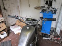 det har egentligen inte hänt så mycket denna uppdateringen, har stansat in ramnummer (stort tack till flu för all hjälp!) sen har jag börjat montera ihop hojen igen och måttat ut längd på bromsslangar som jag förhoppningsvis kan ordna imorgon.