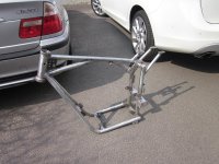 återstår att svetsa fast fästet. fotpinnarna skall bytas och jag skall även tillverka ett länkage till växlingen.