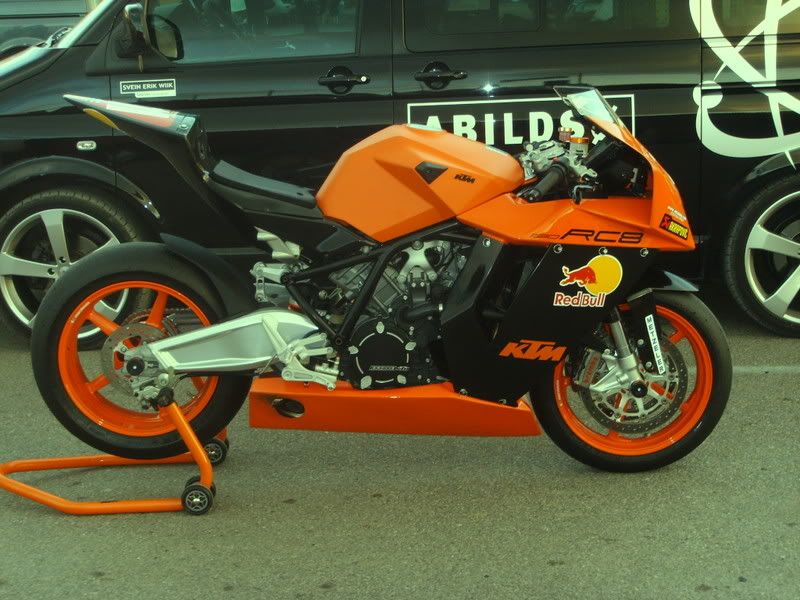 Ni som känner sugna att titta lite närmare och klämma och känna kan komma till våra bandagar på åsen 22-23 maj är KTM med oss Provkörning på banan är till för våra deltagare, men det kanske går att få en tur på vägen, om nu de två RC-8:na kommer att vara lediga.....