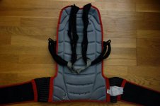 Jag (utom kapningen av understa plattorna) höjde den nedre infästningen för att få armöglor och fixade rem mellan öglorna över bröstet.