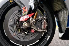 MotoGP-bromsarna börjar ju på att bli en riktigt blaffig konstruktion. Kylflänsar på oken, kylflänsar på skivorna, kåpor som leder luft till bromsoken, etc ta. Man undrar när de vattenkylda oken dyker upp?