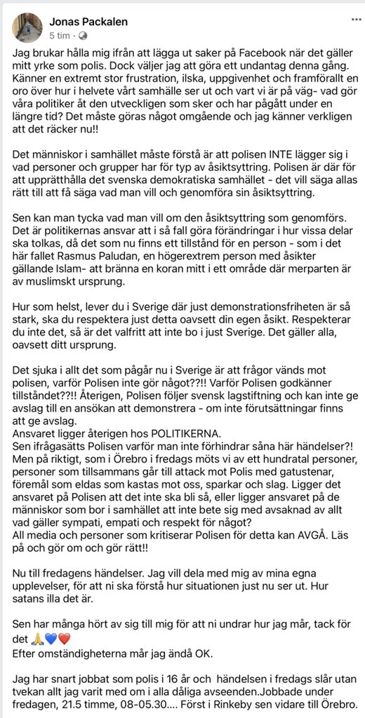 Denna?Jag såg något vittnesmål från någon som skulle vara polis om att de var många poliser men fick inte göra något.